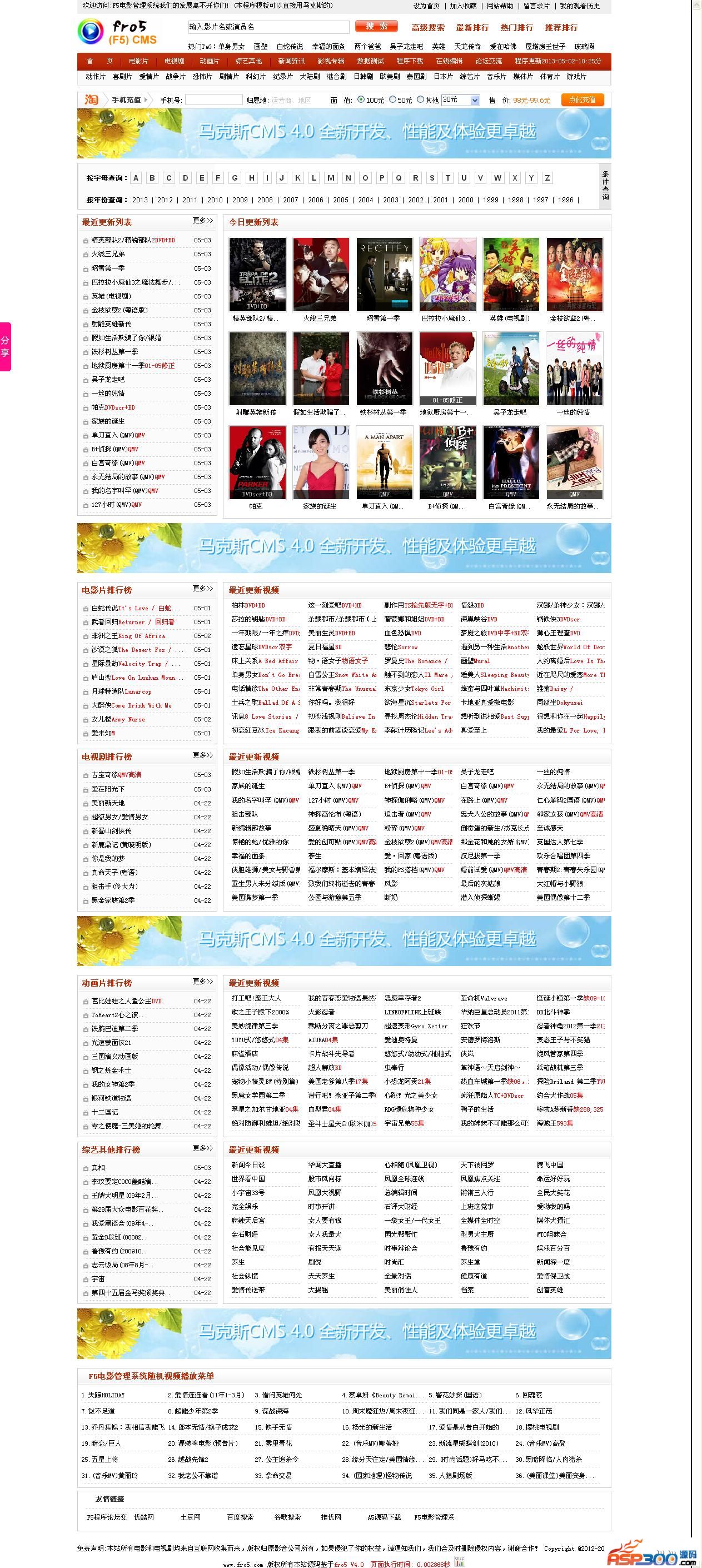 00.F5是一套与马克斯任何地方都一样的程序,后台有着强大的控制外,还在马克斯的基础上添加了视频和新闻首页热门SEO和说明控制!