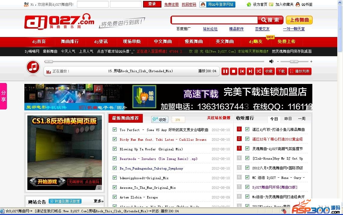第一次发布 dj027嗨嗨网程序,本程序第2次开发,强大的会员系统。舞曲管理系统。 演示:http://Www.Dj027.Com另外还出售92cc.com 111ttt.com vvvdj.com 播放器 支持iphone 安卓 在线播放。需要的联系吧 演示地址:http://www.dj027.com/sj.php