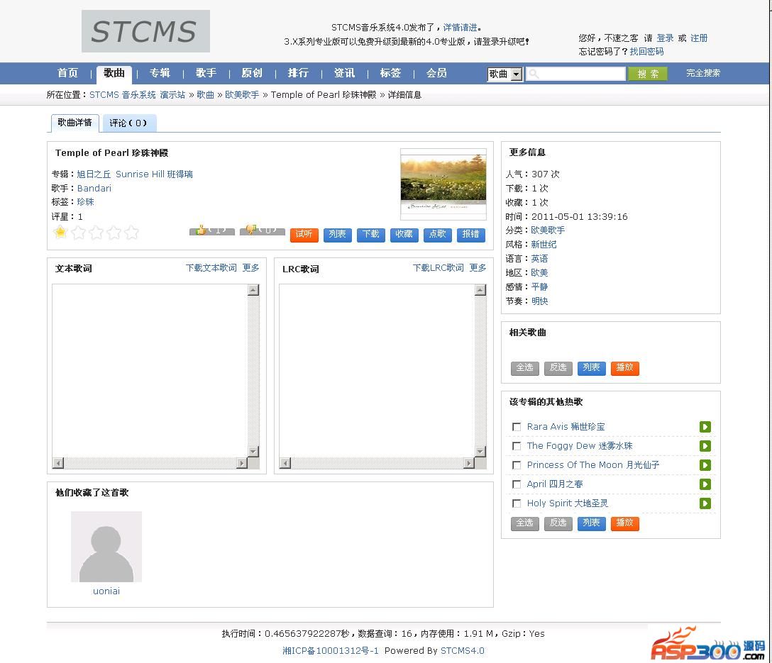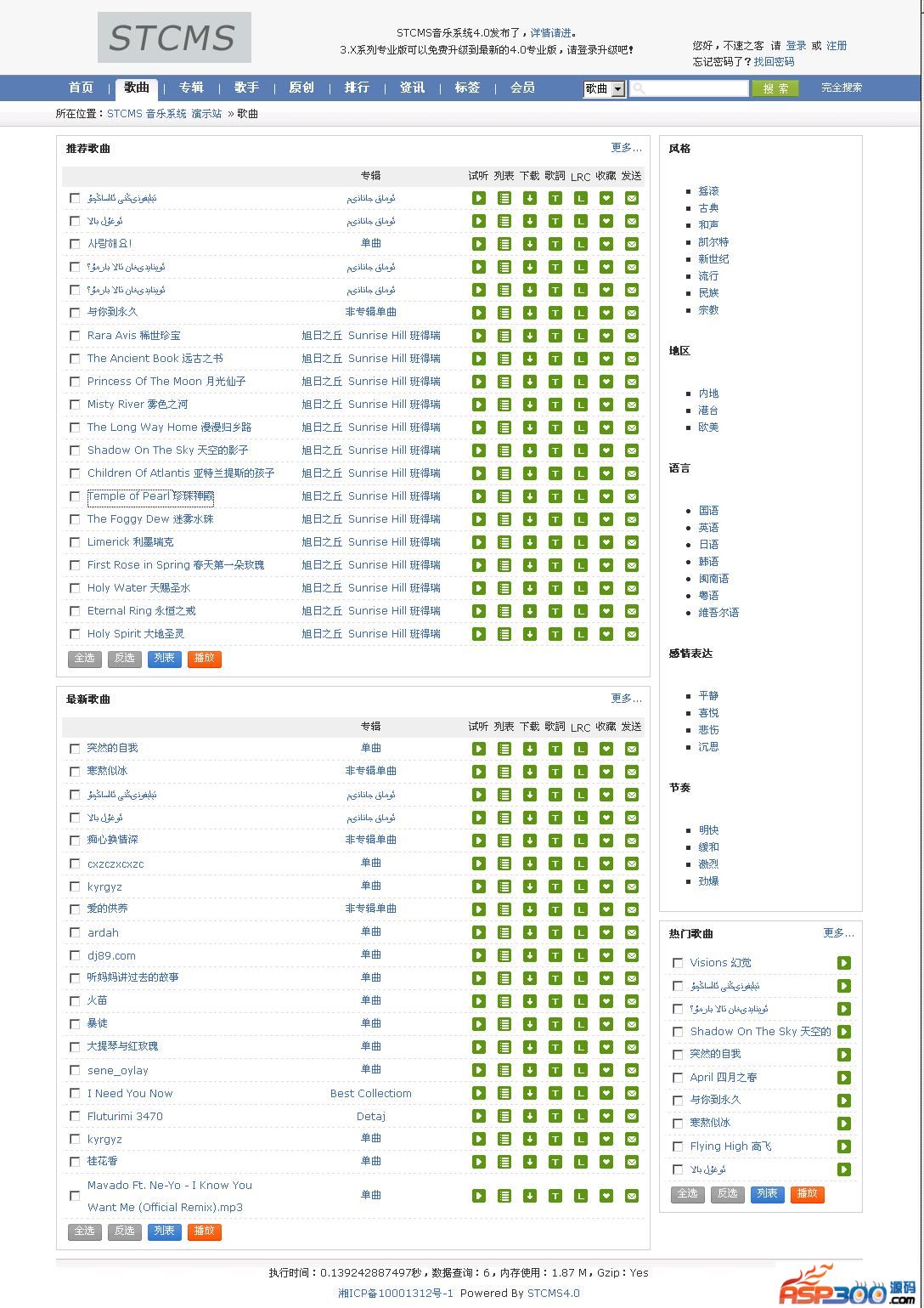 STCMS音乐系统是一个优秀的音乐内容管理系统,本系统基于PHP+Mysql,采用MVC模式开发,支持模板标签,调用灵活。 系统出了支持音乐系统固有的基本功能外,有如下特点: