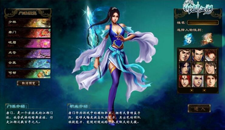 答:新出的一款网页游戏,名为《御剑江湖》,类似搜狐《天龙八部》。