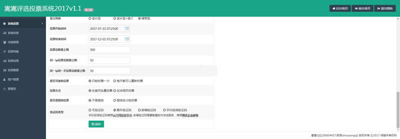 注意:1.邮件验证码与手机短信验证码需要修改程序中的配置2.试用版不验证投票的有效性,是无限投票的