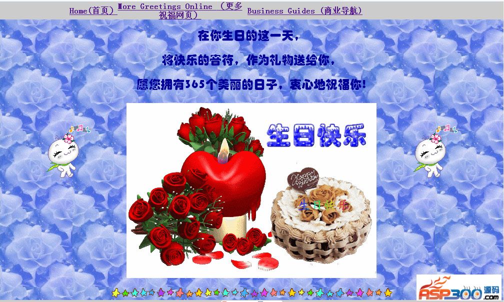生日祝福网页源码,静态HTM格式,无需数据库支持,任何支持静态网页的空间都可以使用。