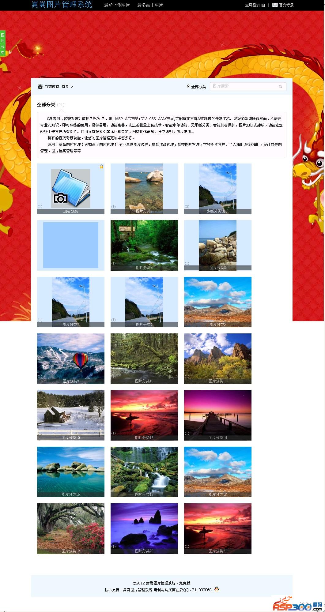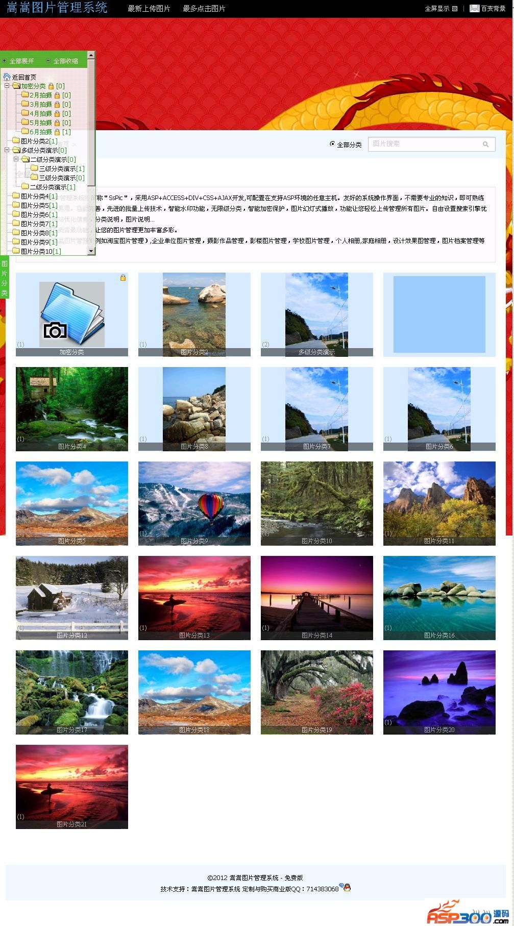 无限级分类,智能加密保护,图片幻灯式播放,功能让您轻松上传管理所有图片。自由设置搜索引擎优化相关的,网站优