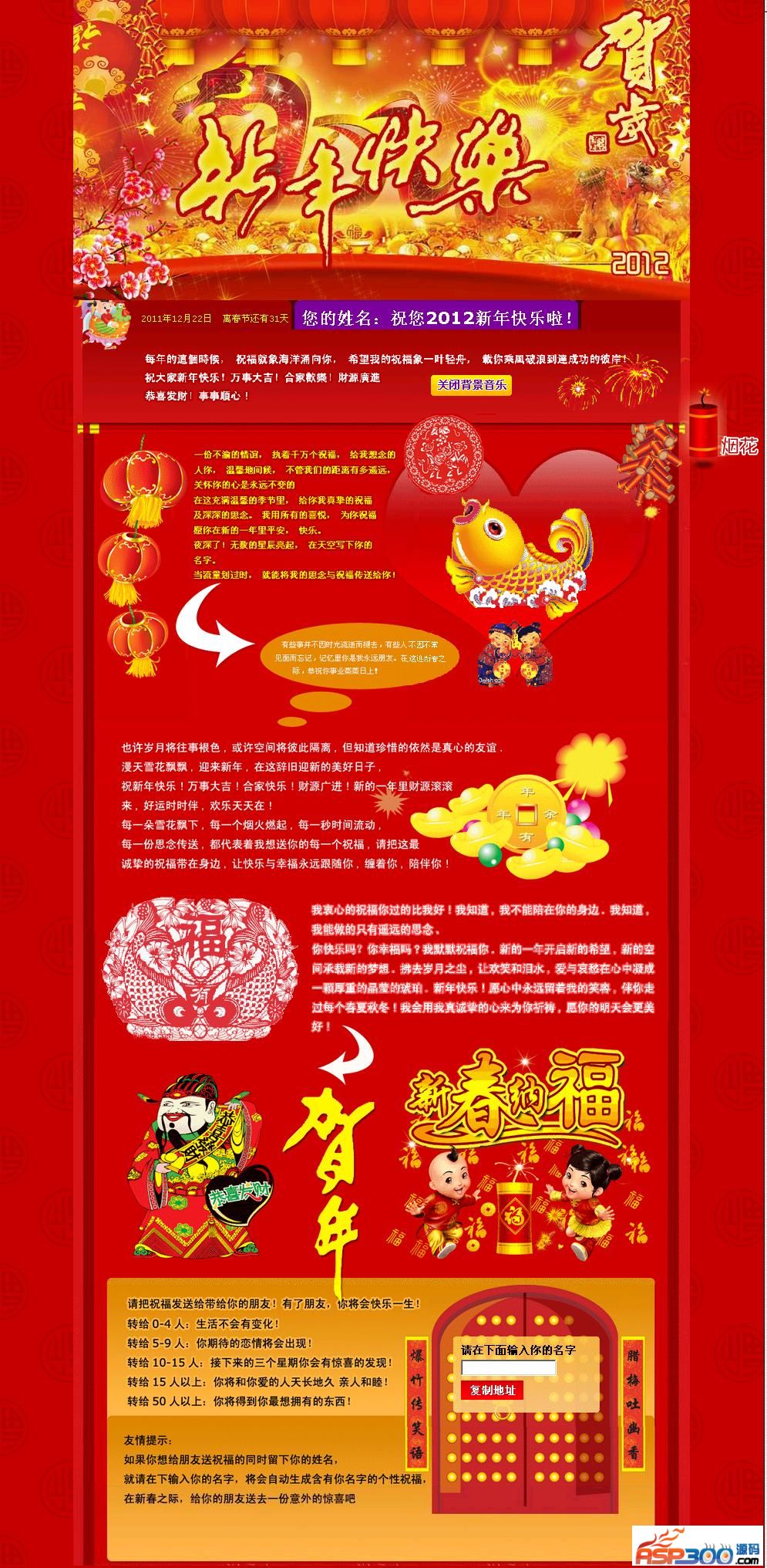2012新年祝福网页(元旦春节贺岁祝福精美网页),给您亲人和朋友送上最真挚的龙年新年祝福语、祝福词和祝福贺卡,祝福亲人和朋友新年快乐!