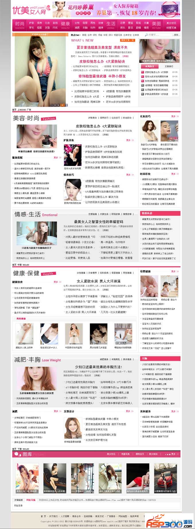 源码介绍:优美女性网,最新极品女性时尚网站模板源码,精品女性健康时尚网站源码带美女图片栏目.