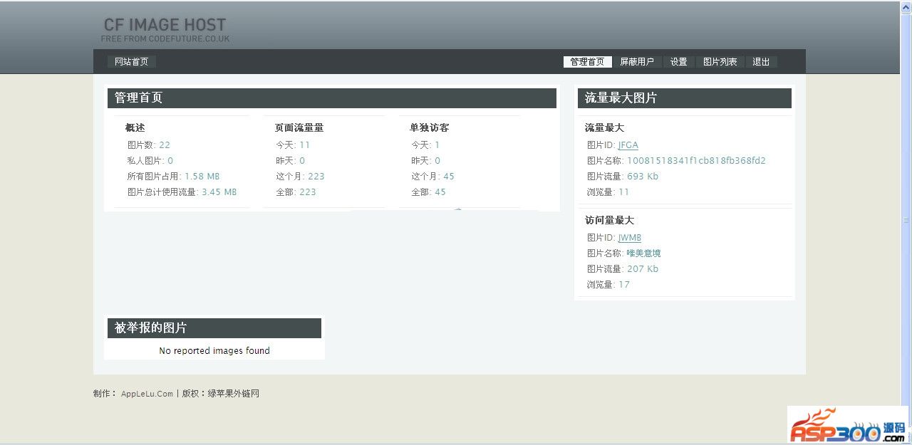 绿苹果图片外链网是提供图片外链程序可以在任意支持php的系统上运行,不需要数据库谷歌广告一键设置 不需要麻烦的一个一个改代码支持多语言,多文件上传,支持远程图片上传,自动生成缩略图,原图外部链接,后台可以设置自动删除,流量控制,图片权限,图片格式,更新了一个小问题解决略缩图不能大图查看问题!安装教程上传空间 访问 www.xxx.com/install.php 按照操作提示进行按照即可使用