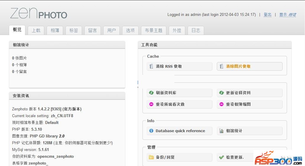 ZenPhoto是一款小巧的相册软件,基于PHP+MySQL技术构建,另需GD库支持。它安装方便,扩展性强,可轻易安装各类模版及插件,并可与 WordPress整合。具备RSS输出、FTP上传方式、Tag功能、评论回复等功能,它除了能存放图片外,还支持FLV及WMV视频。