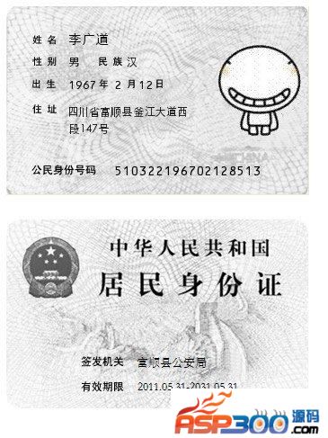 头像的背景用PS透明处理掉(方法:在PS里点魔术棒,然后点←键),可以做出来更真实的身份证复印件