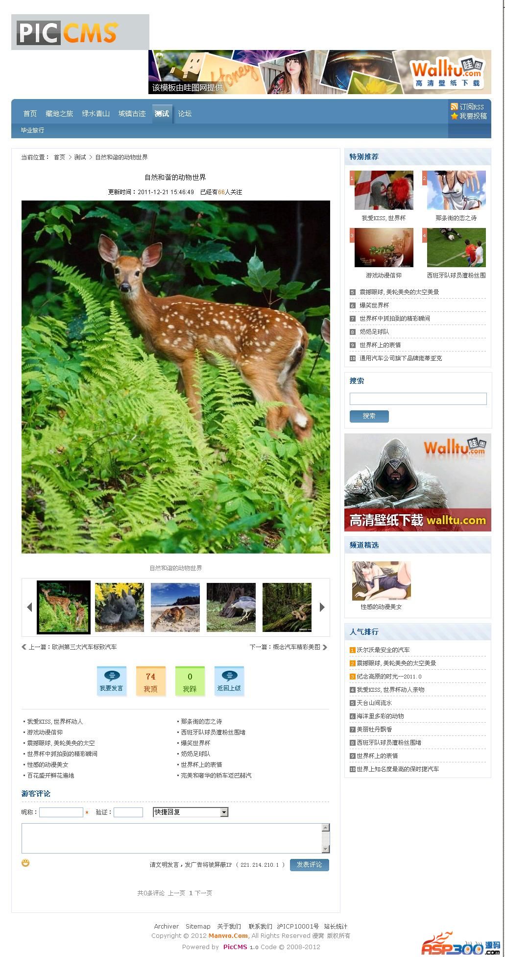 欢迎使用PicCMS 图片管理系统,原MyPic开发团队三年后回归之作,最快捷,最方便的图片上传和管理系统。·采用MVC架构,详尽注释,方便二次开发和扩展·UTF-8编码,方便安装在国外主机·支持批量上传,抓取远程图片·外部图片自动保存在本地·自动控制上传图片和本地化图片尺寸·自动给上传及本地化图片添加水印·自动提取首张图片为缩略图·自动生成任意大小缩略图·幻灯片模式图片展示页·支持静态缓存,全站生成HTML·内置采集器,迅速从网络抓取图文·自由分类,自动生成导航和内容调用·模板分离设计,轻松设计模板·方便自由的模板方法,可以实现复杂多样的调用效果PicCMS 图片管理系统v1.1更新说明
