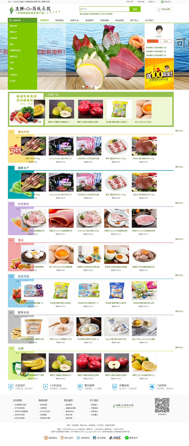 生鲜o2o商城系统(多商户免费无限版)适用于生鲜、蔬菜、菜篮子生活配送商家交易门户网站。新版增加微信扫码支付、手机WAP、微网站等版块。增加地区导航、开通分站功能。