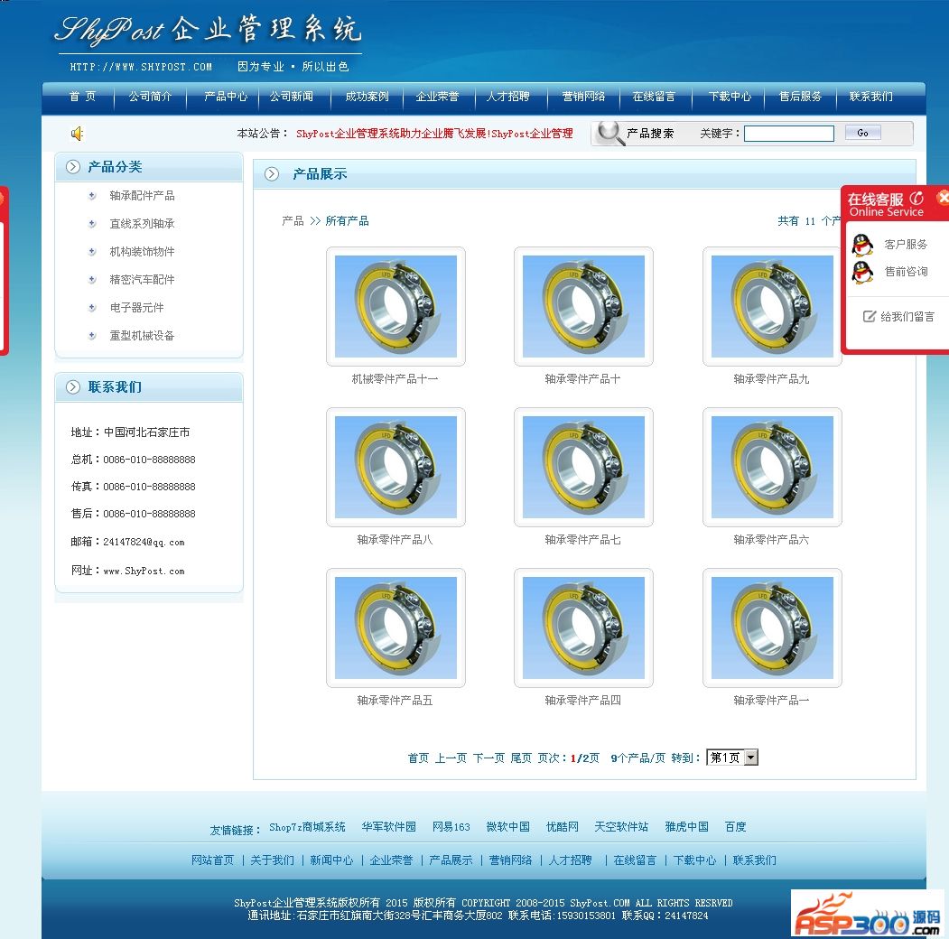 ShyPost采用框架模式开发,修改编辑方便易用,自推出发布以来受到众多用户的喜爱与好评!,可以满足各行业需求,产品使用简单,成熟性能稳定!系统完全开源,可以根据自己需要任意修改,且风格各异,可以适合各行业使用,软件具有体积小、简单易用且功能强大等特点,强大的前台展示和后台管理两部分组成。支持长幅动态广告图片调用。商品滚动展示功能。导航栏目内容划分清晰明了,包括公司简介、产品中心、公司新闻、成功安全、人才招聘、在线留言、下载中心等十几个栏目内容,完全可以满足各类企业的需求,是企业最佳的建站软件。