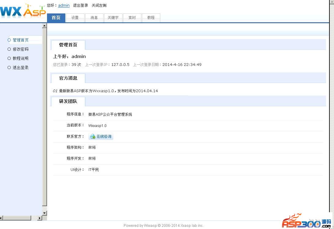 微易ASP公众平台_Wxxasp,是独立开发的ASP版微信公众平台API,用Sdcms作为框架,可集成到任何系统中,本程序过滤SQL注入漏洞,可安全使用。