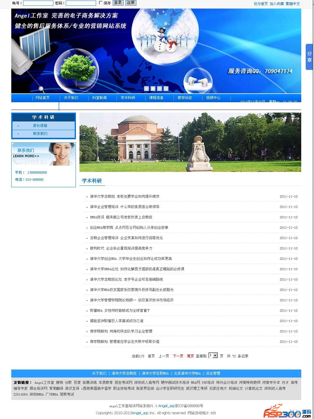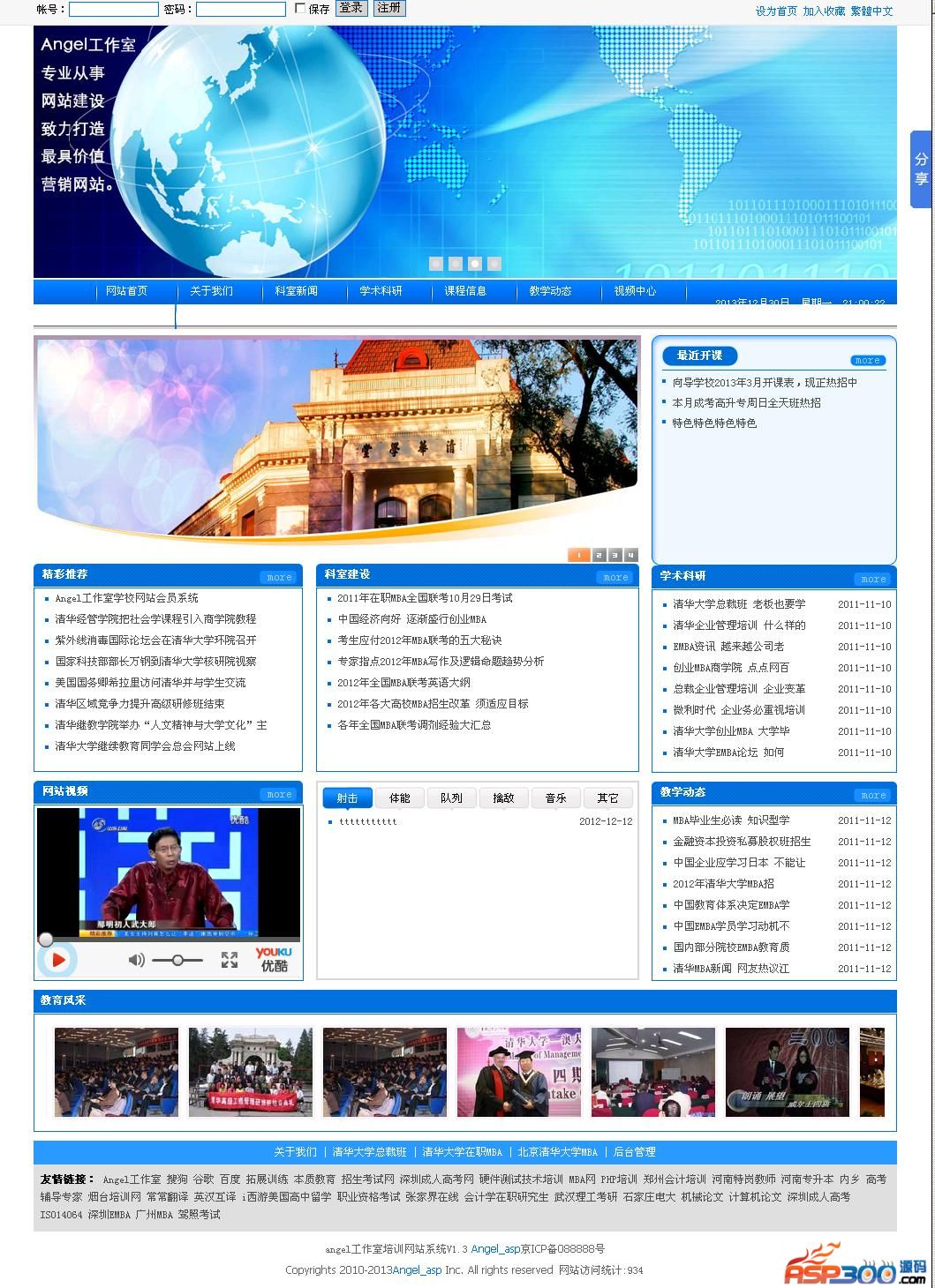 Angel工作室学校/培训网站管理系统,系统代码开源,前台采用DIV+CSS模板,防注入sql关键字过滤,多浏览器适应,