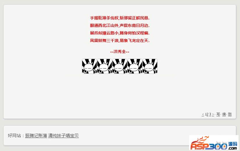 此模版是基于米号微博修改而来,感谢米号!不喜欢原来xhediter,所以就换了百度编辑器,但是不知道怎么精简,比较大,有5.2M!有知道怎么精简的,可以帮忙精简下,谢了!本人一直以来都比较喜欢简洁的模版,所以就临时做了这个简介的模版,时间仓促,做的不是太细。后期会根据情况在做调整。修改较大,自己感觉用不到标签的全部删除,当然,如果有谁想再增加上去,可以联系我。去除的标签有:博主头像,博主名称,博主简介、微博名称以及回复页面。登陆页面:http://您的域名/shuxie.asp登陆账号密码:zt—123456后台基本设置什么的,都是先登陆后再在http://您的域名/shuxie.asp页面底部点击管理进入即可!演示:zhenteng.cc