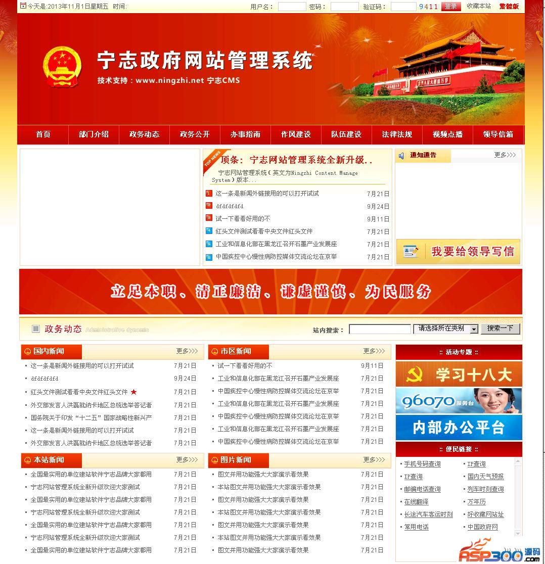 宁志政府网站管理系统为宁志政府网站管理系统的简洁版,去除一些功能,比较适合小单位使用的一套专为地方政府建站首选的信息网站管理系统,大红色风格宽频页面十分大方。宁志网站管理系统是国内知名建站软件,它由技术人员开发好了的一种现成建站软件,主要为全国各地方政府、公安、事业单位、企业公司、自助建站提供方便。网站系统无复杂的安装设置要求,适合广大工作人员使用。特点:安全、稳定、美观、实用、易操作…可设管理员权限分配。