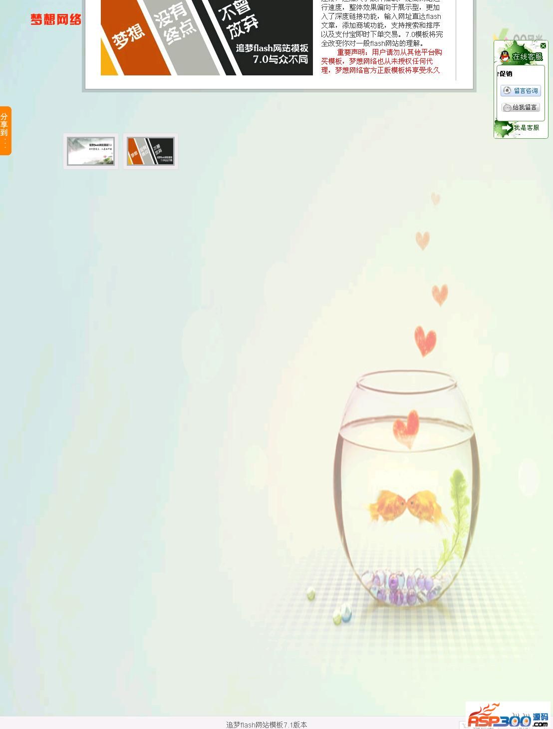 追梦flash网站模板7.1,网站在保留了原有功能的同时,对一些功能进行了追加修改,可以上传更大的背景,可以识别特殊符号的文件等。网站整体拥有缓动效果,页面切换更加自然,网址拥有深度链接功能,直达每个页面,相册栏目更可支持数千张图片,购物中心最新添加的支付宝担保交易,更符合企业产品出售方式,无企业支付宝用户可选择关闭购物车功能,用户无需过多修改即可轻松拥有自己的flash整站。重要声明:用户请勿从其他平台购买模板,梦想网络也从未授权任何代理,梦想网络官方正版模板将享受永久升级和售后服务,对于从其他平台所购盗版模板,我们将不提供任何服务,必要时我们会强行清除盗版模板数据以维护正版用户权益! 请尊重他人劳动成果,拒绝盗版,维护网站健康发展环境。梦想网络官网:http://www.53dream.com 追梦flash网站模板8.0部分功能说明: