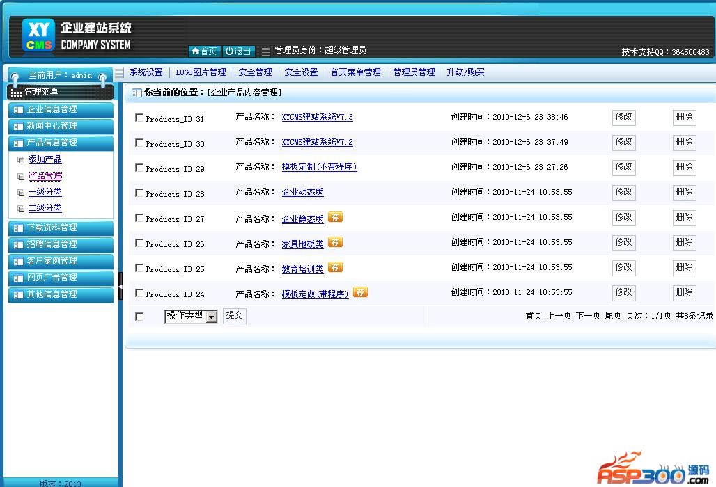 产品内容管理:对产品类别进行管理,分为大类和小类,发布最新产品信息