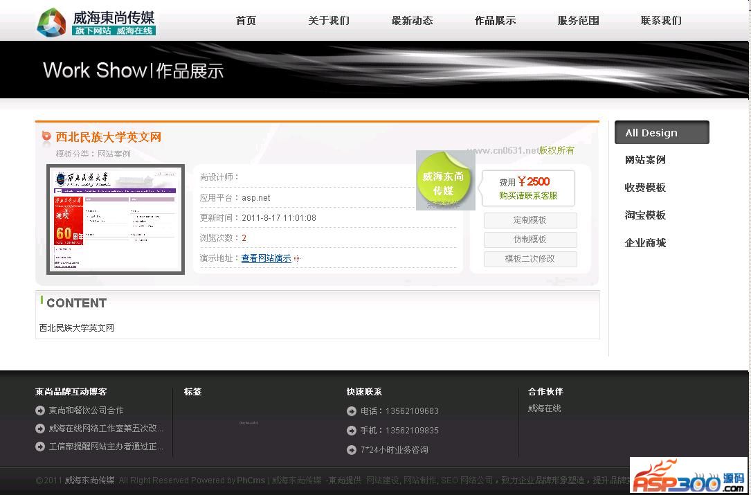 今天给大家提供一个漂亮的网络企业与工作室源码,APSCMS内核的,适合SEO建站,源码安全可靠,内容完整,觉得好请顶一下哦,安装地址:你的域名/admin/(支持其他目录安装使用),,压缩包里面有iis测试,
