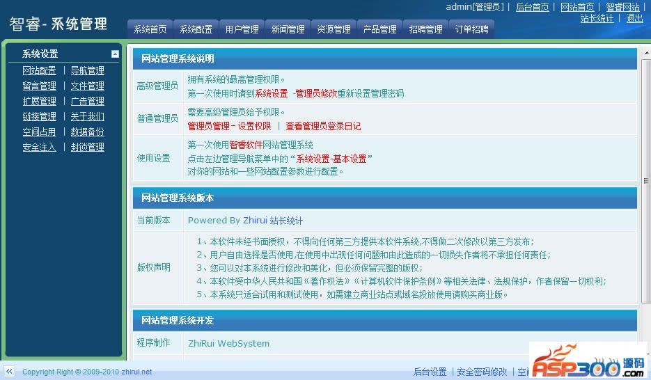 智睿企业网站管理系统具有强大的系统功能,支持中繁任意切换,拥有文章/新闻、图片/产品、资源下载、人才招聘、订单系统、问答/留言、友情链接、广告系统、自定义模型、投票调查等众多丰富的功能模型。