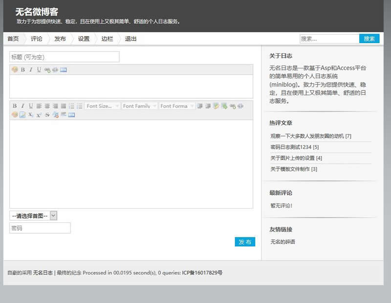 无名微博是一款开放源代码的程序,你可以在任何项目中任意使用而不需要支付任何费用,并且你也可以很方便的修改源代码来符合自己的要求。