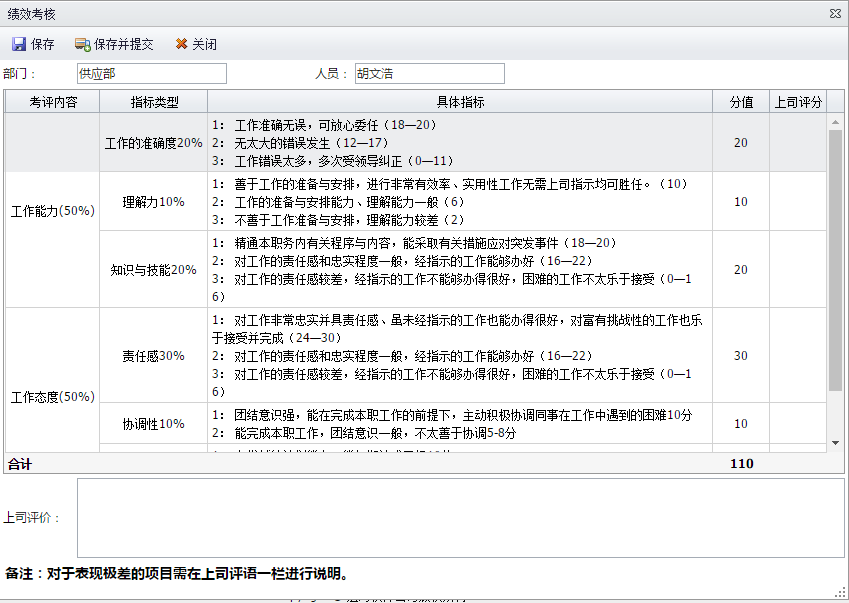 2、本软件所有指标可以自行定义,可以实现在线评分