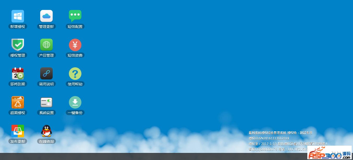 1 增加短信接口功能,可向授权用户下发授权信息短信,当用户快到期时,向用户发送到期提醒。