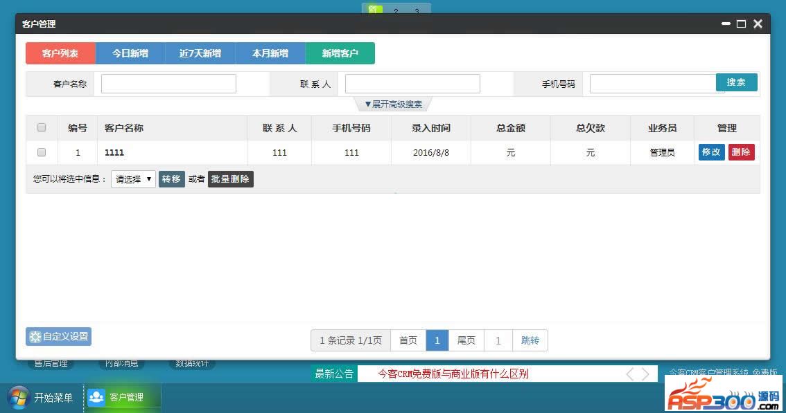今客CRM客户关系管理系统完美版 v6.7更新日志