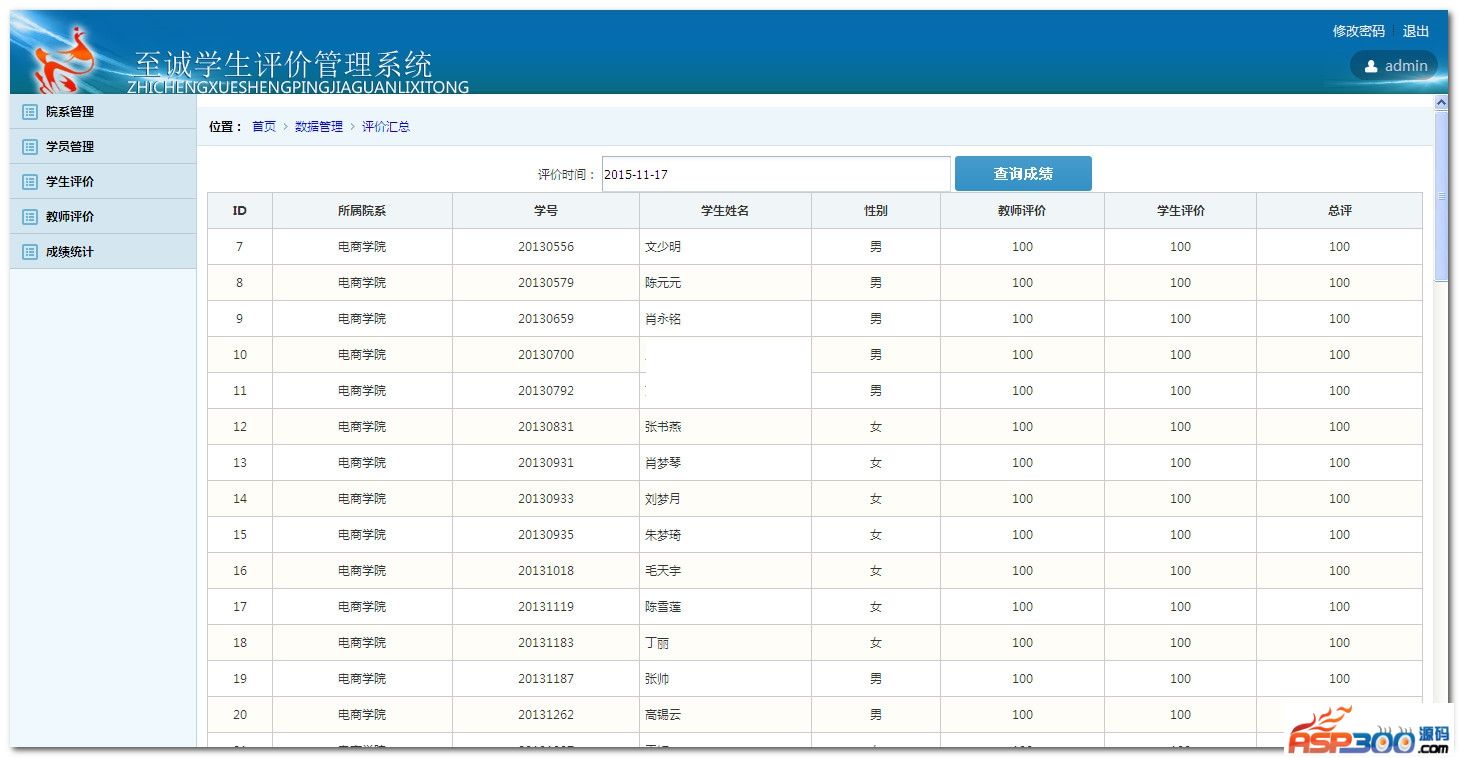 此评价系统方便,简单实现学生评价的汇总,能提高管理人员的工作效率。