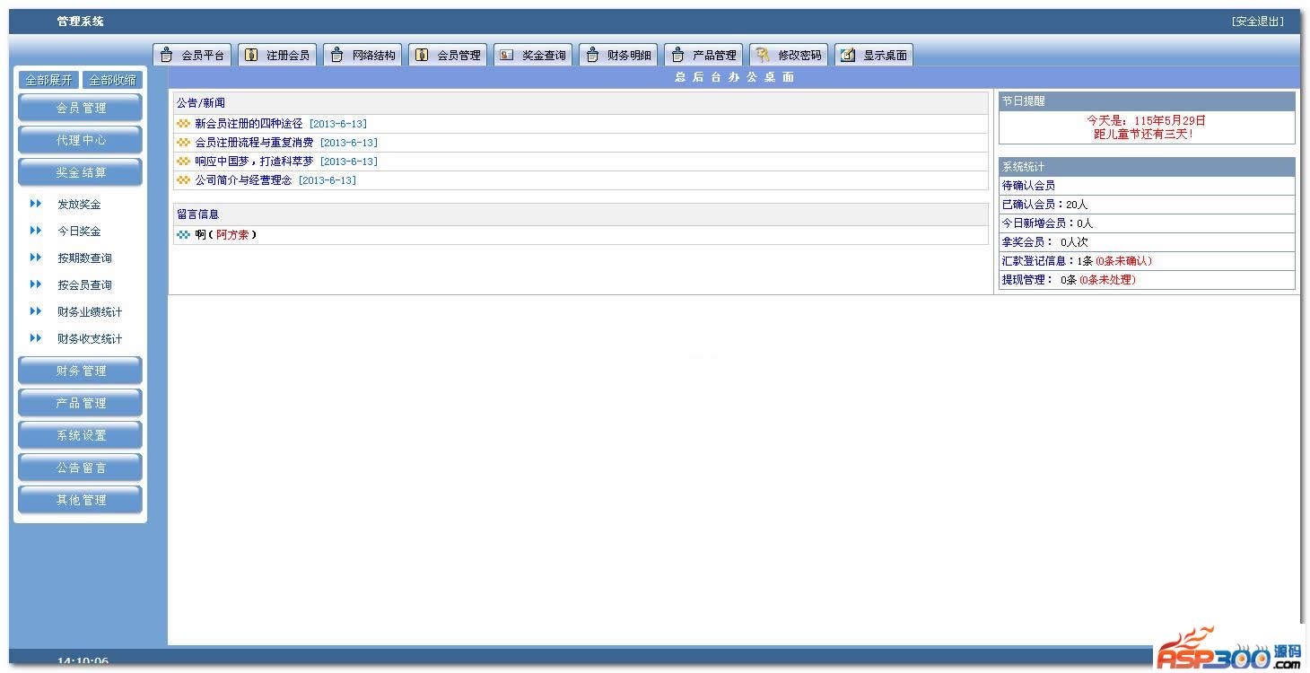直销类网站源码后台完整界面大气美观注意:此商品为源代码,是可以复制的,所以出售后不给予退款.(本网站程序仅供参考学习使用,以演示为准,如有程序修改问题可与客服联系,费用另外收取)程序语言:ASP+ACCESS