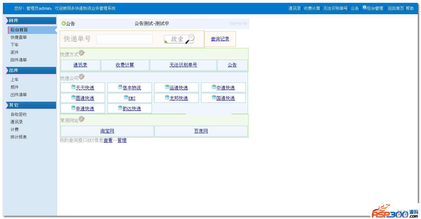 快递物流业务管理系统是目前唯一具有支持多快递物流公司单号自动识别功能,完善的查询接口多达百间快递公司。专为镇区级无官方后台管理权限用户或门店经营代理多个快递物流业务而订做。让最后一公里派送也轻松实现管理。它主要涵盖了快递派送、收寄这两个核心业务,它功能精简实用,操作简单易于上手,是经营快递业务的得力助手。