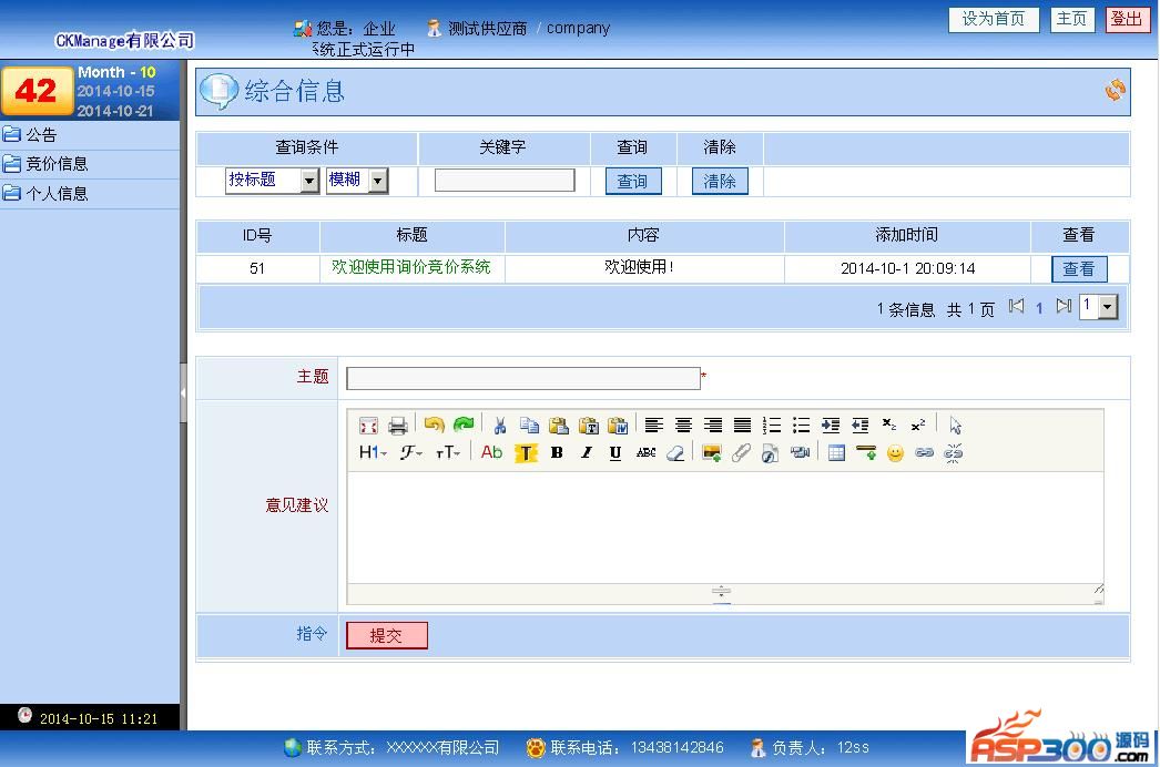用户(企业登陆)index.asp,测试账号和密码company/company