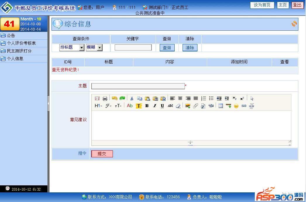 当某测评表达到其预设的打分日期后,在用户的菜单栏中将出现该测评表的打分条目。可以给被测评的人进行评分。