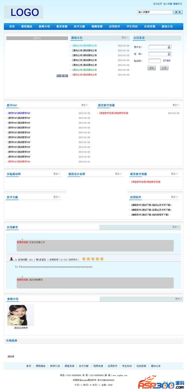 简单教师资源管理系统是一款基于ASPCMS内核开发制作的学校教师文档资源管理的网站系统。主要功能对学校教学资源进行统一管理。包含:课程描述、教师介绍、课堂资源、视频资源、软件下载、在线答疑等众多功能。
