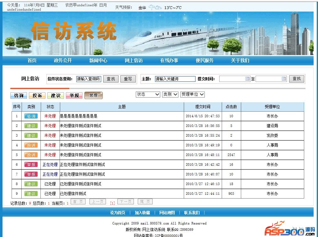 网上信访系统V1.0是政府部门在网上开设的网上办事、咨询服务版块。其最大的特点是:以往市长信箱市民提交信件后,转办只能采用电话、纸质文件形式办理。而市长信箱(网上办事)管理系统,后台管理员审核信件后,交给相关职能部门处理,相关部门只要登陆信箱后台程序,就可以提交答复。