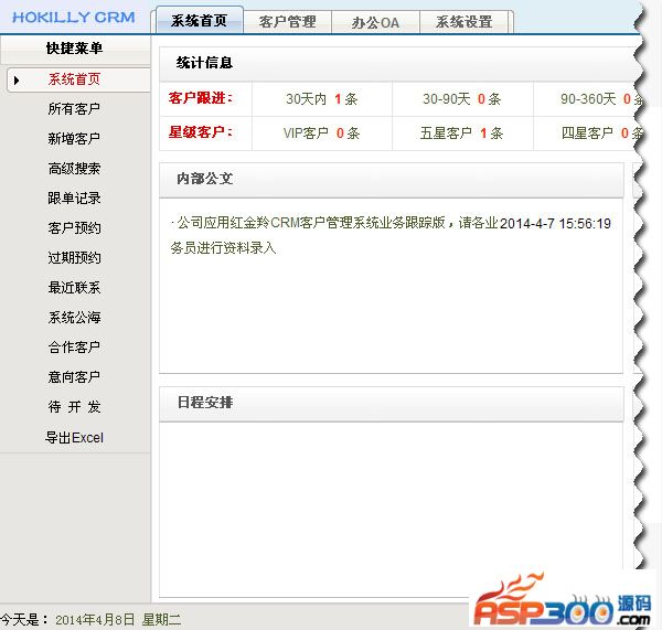 系统演示地址:Http://oa.hokilly.com/demo/Hokilly_CRM_gz_C/