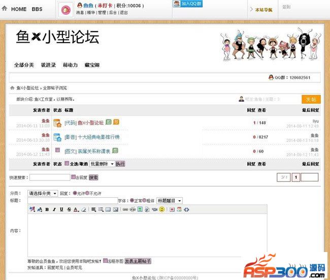 鱼X小论坛申明:本程序使用追梦阳光贴吧核心、深山简易bbs风格、无忧E吧的优化。