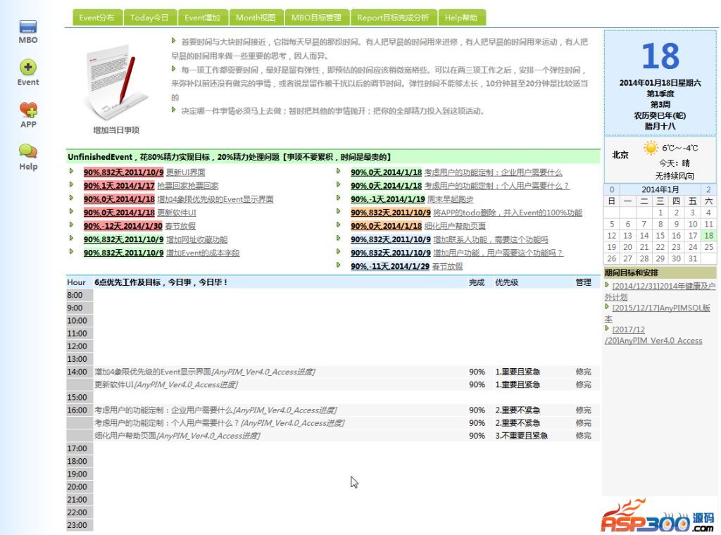AnyPIM个人信息管理系统是一个帮助您管理您的目标、时间、计划、事件、工作日志、财务、投资、生活、通信录、知识、简历的系统。