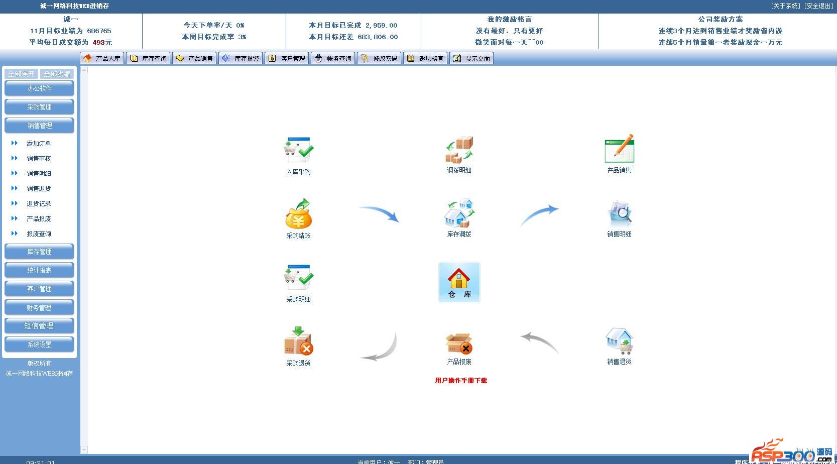 完全基于 WEB 的综合应用解决方案, 真正的 B/S 模式, 使用asp开发, 不需任何安装, 只需一个浏览器, 企业领导, 业务人员, 操作人员可以在不同时间, 地点, 并且可动态, 及时反映企业业务的方方面面. 产品入库,入库查询 库存管理,库存调拨 产品出库,出库查询 统计报表 会员管理 员工管理 工资管理 单位管理 仓库管理 凭证管理 资产管理 流水账管理 产品分类管理 供应商管理 员工权限细分 网络办公 信息平台!直接上传到网站根目录中即可,本地安装直接放入WEB服务中即可实现局域网访问,如果是2003服务器,请开启子目录功能。