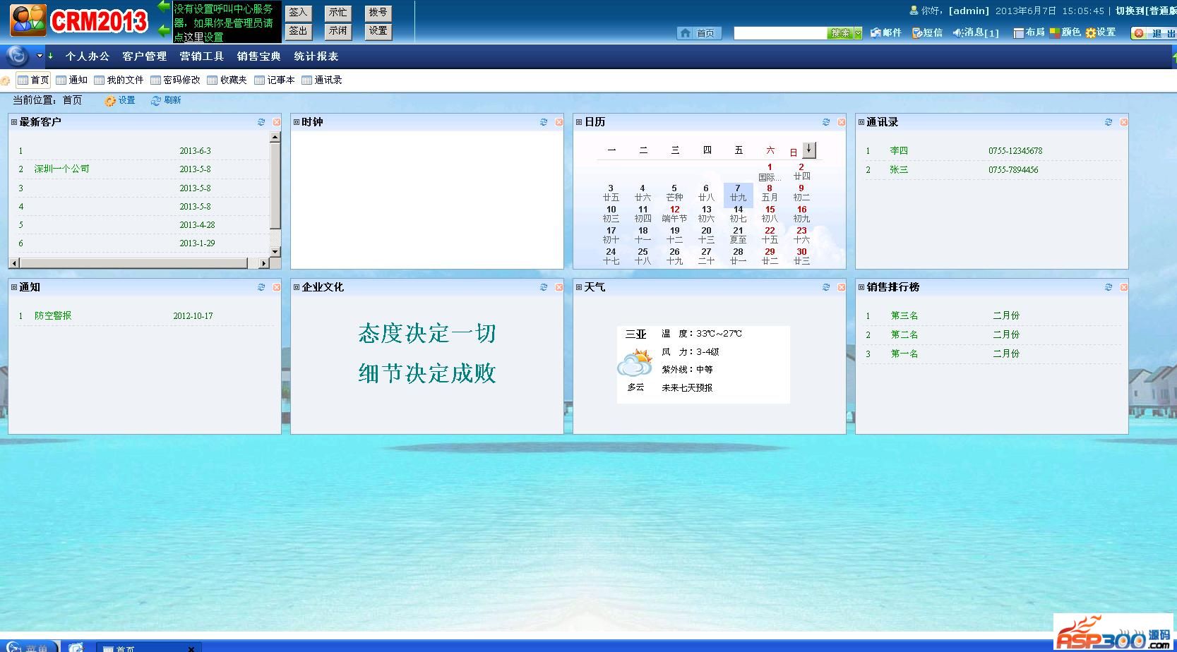 因特达crm2013主要以客户管理为主,同时系统拥有强大的自定义功能,可以定义适合各个行业的客户管理系统,系统已经集成呼叫中心,邮箱群发,短信群发等功能。 本系统简单易,扩展性强,适合各种中小企业信息管理。