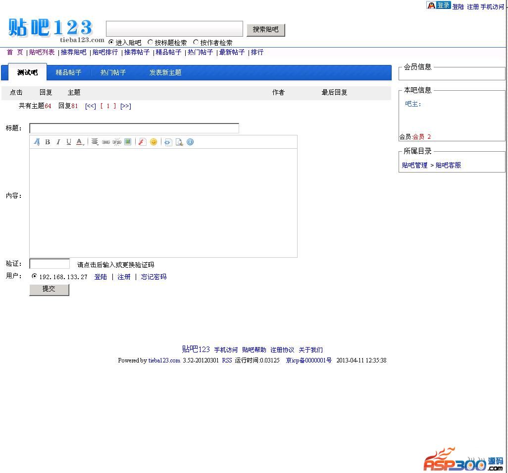 仿百度贴吧程序第三版 utf-8版本百狗贴吧