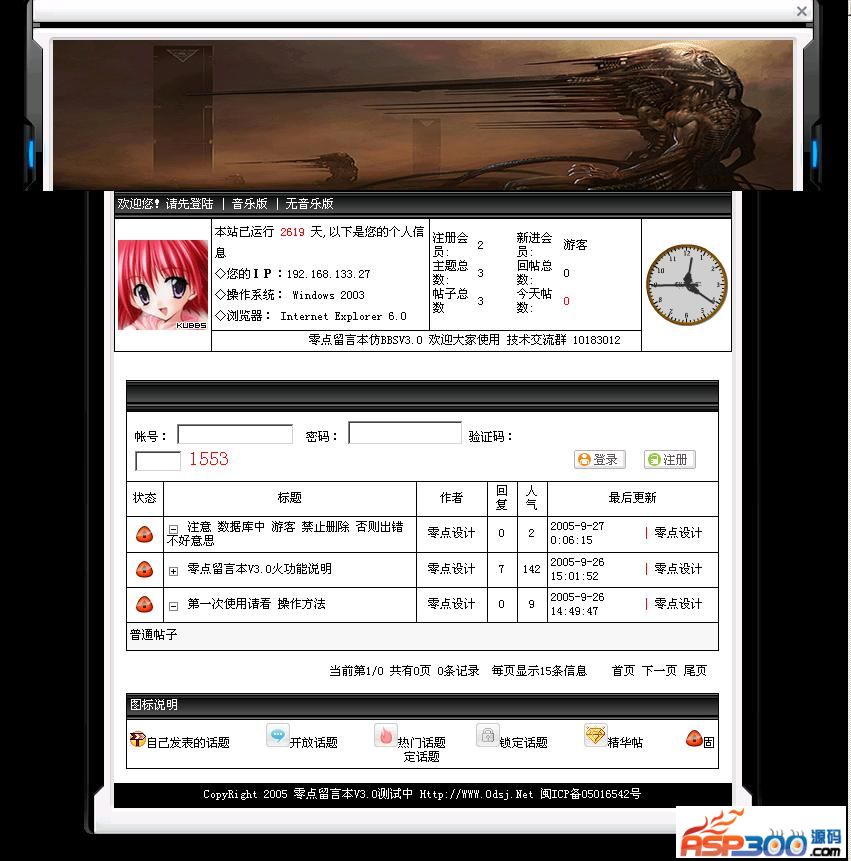 程序演示: 演示地址http://moni.138l.com/bbs/