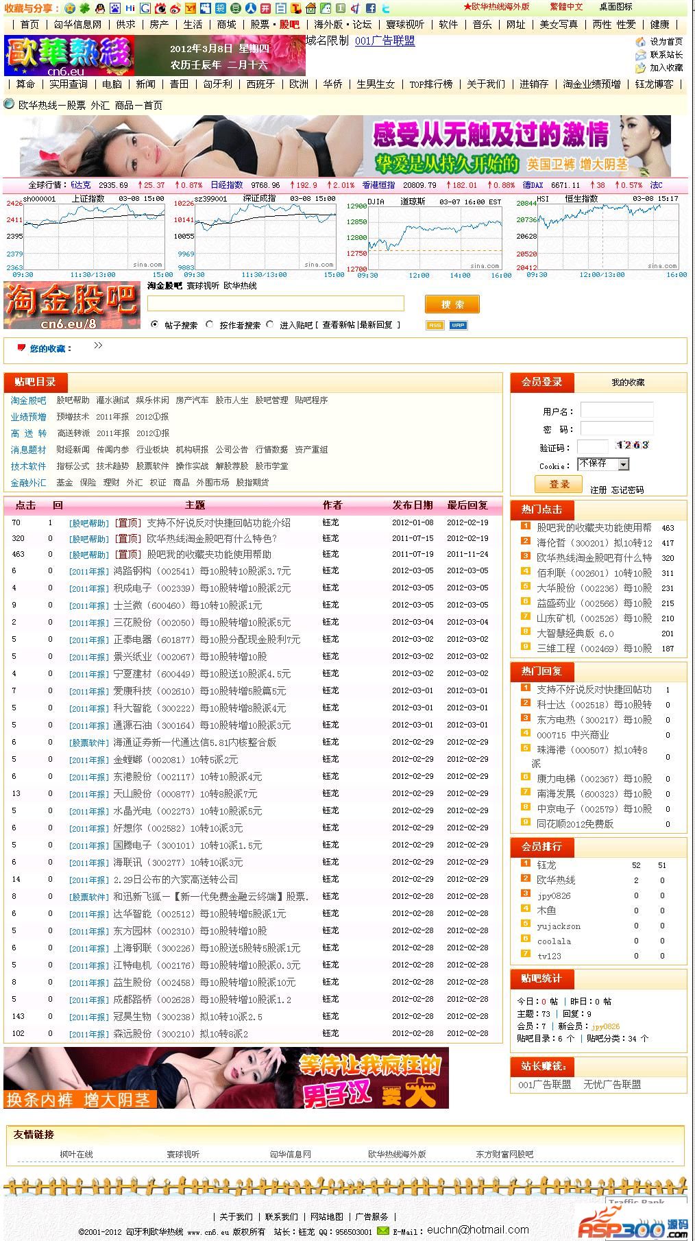 5、对应股吧内容,网页风格配色使用金色基调,大气美观。