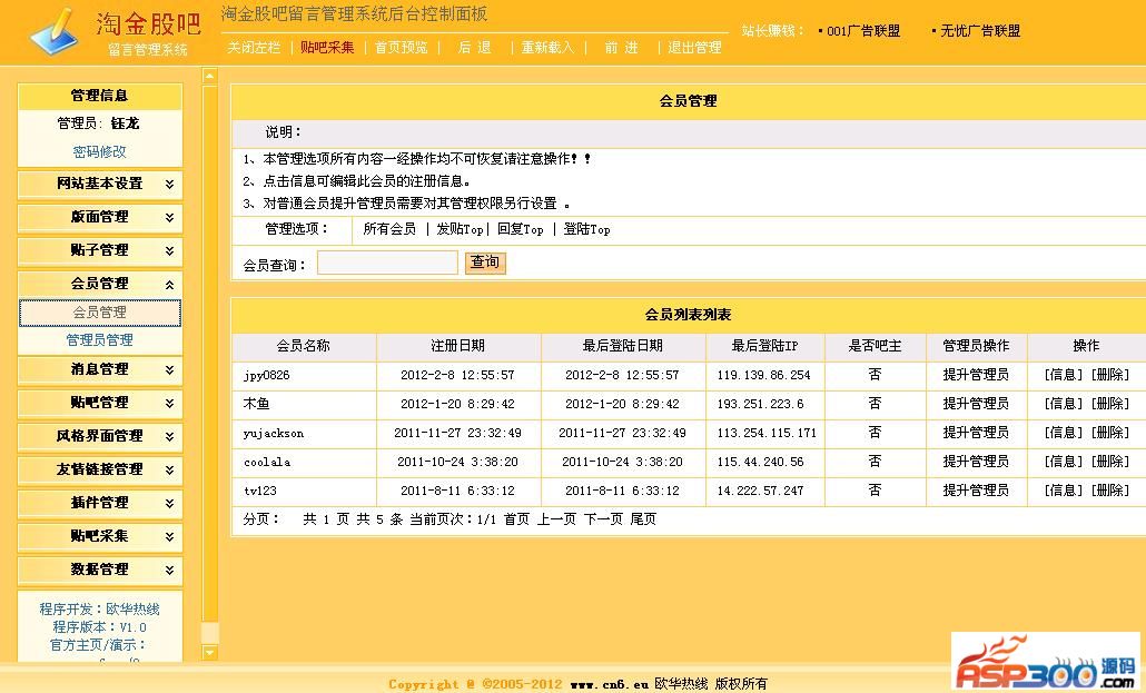 后台管理地址:贴吧目录/admin/