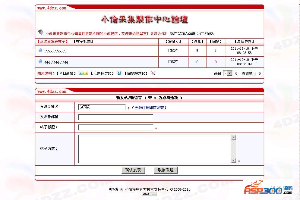 红色迷你单版小论坛采用asp+access数据库,免注册既可发帖!后台管理方便。