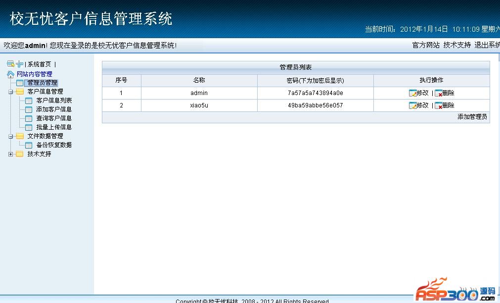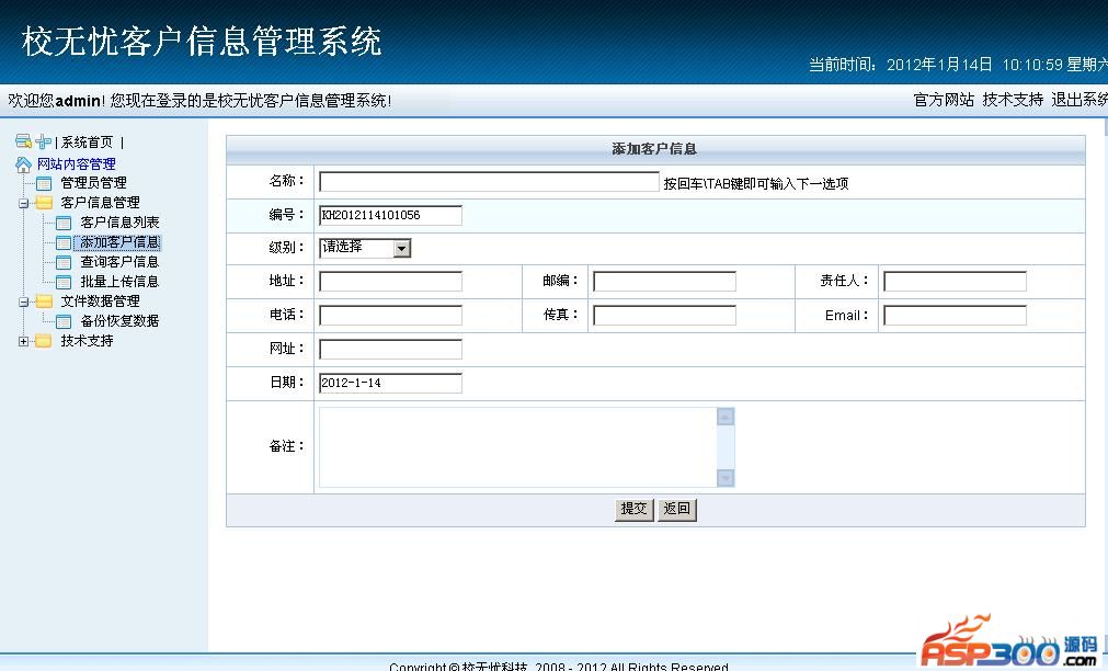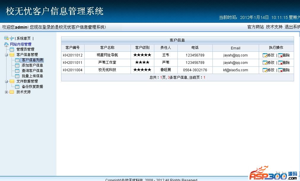 系统概述:校无忧客户信息管理系统是一款简单的客户信息管理系统,以客户为中心,把科学的管理与信息技术结合起来,实现客户信息的统一管理。系统适用于企业、公司、教育培训机构、企事业单位……