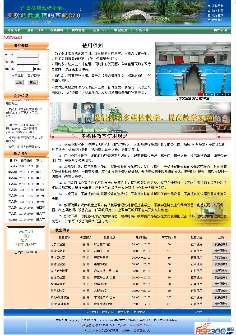 多功能教室预约系统C7.0版本_2011年12月22日更新