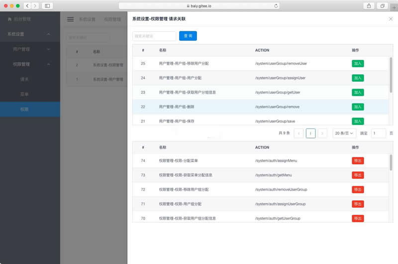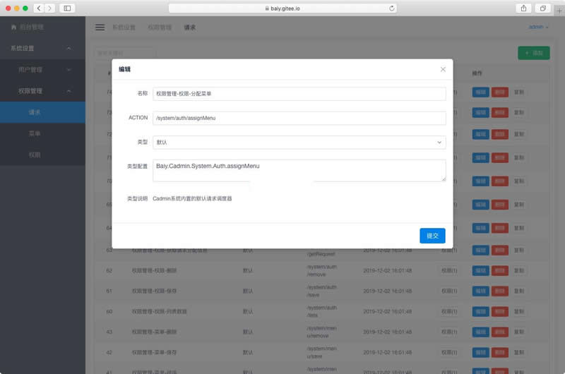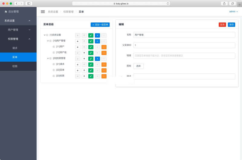 2、权限/请求/菜单:对前端API请求权限校验和菜单进行配置