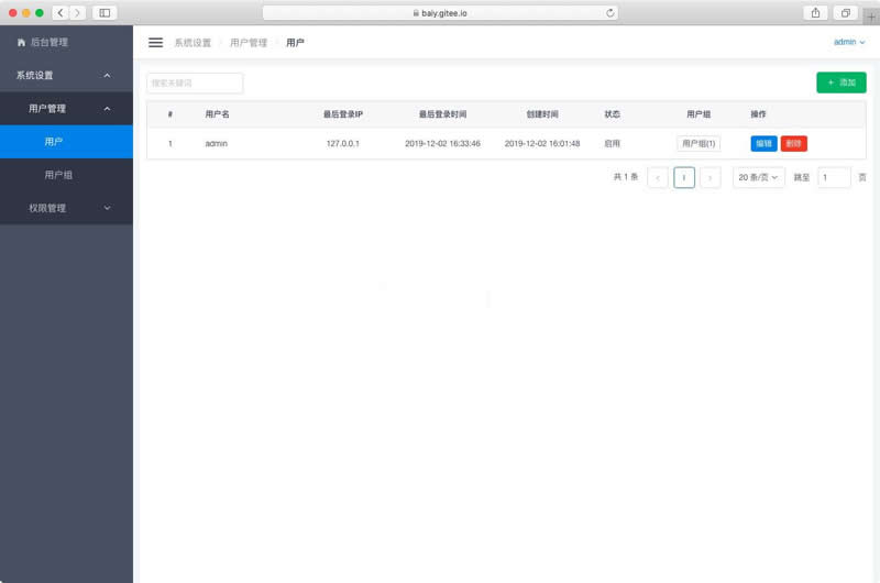 1、用户/用户组:后台用户基础信息维护和登录状态保持