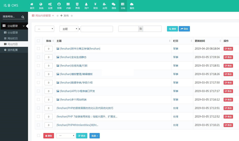 迅睿seo分站站群系统主要面向学校、集团、个人站长。迅睿seo分站站群系统模式为“主站+分站”的模式,每个分站均可以独立系统,也可以采用独立的数据库、顶级域名、不同的服务器,同时支持ftp异步撤分。站群系统支持百万级数据负载、高安全、体系化、模块化均是其核心优势。