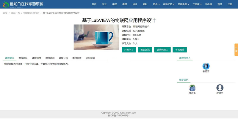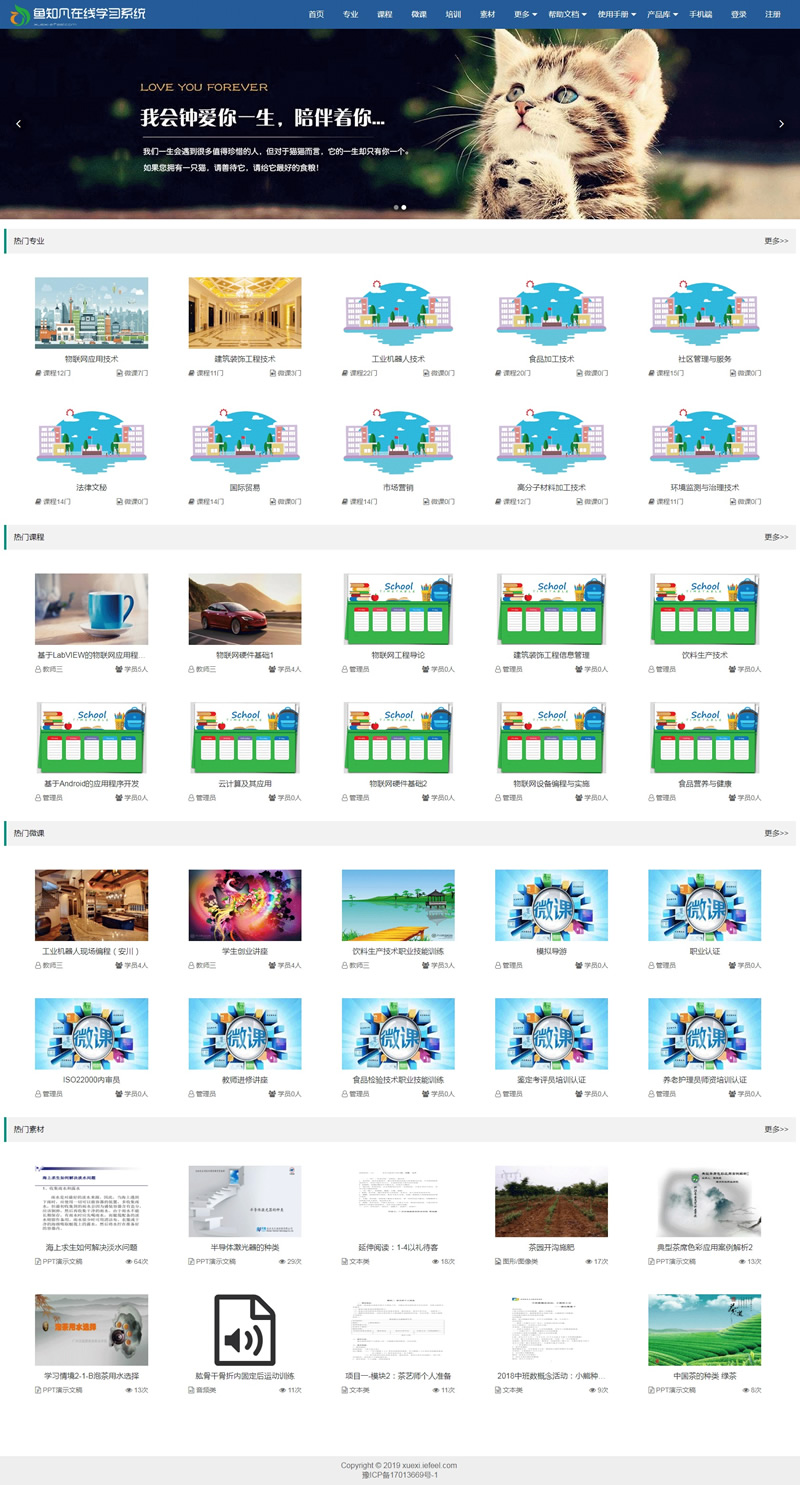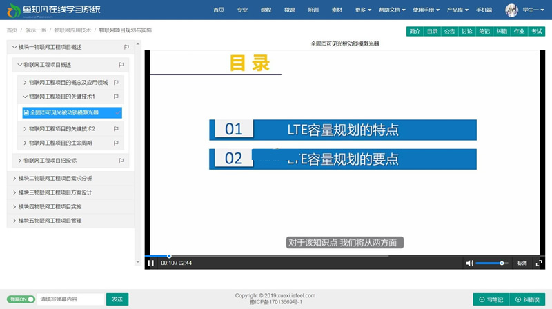 主要包括用户、课程、微课、培训、资源库、作业、考试、题库等几大功能模块。